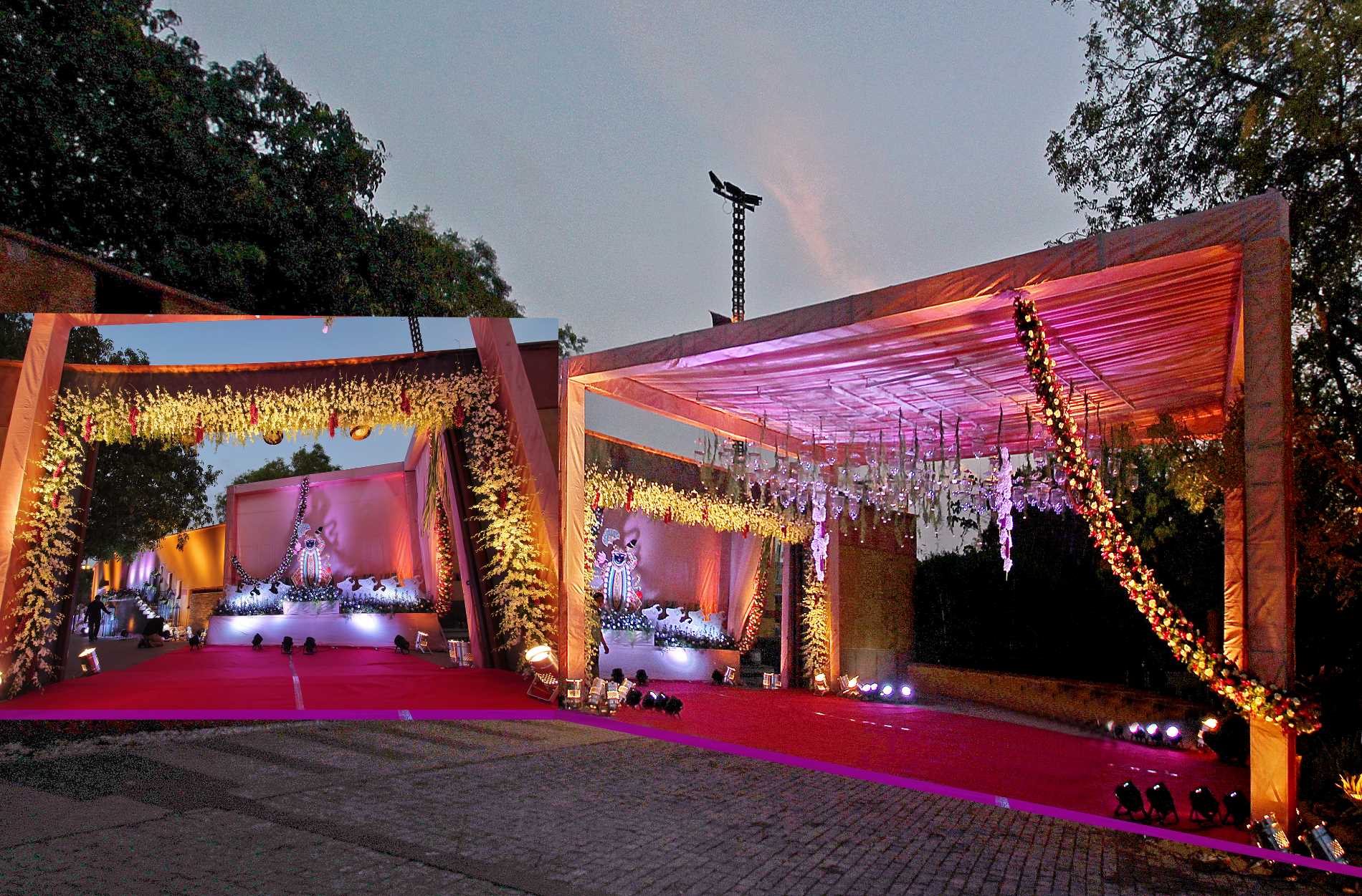 A venue which is remotely located from the busy city life, also gives our client an option to choose from our five different lawns including our State-of-the-Art Banquet Hall which is well equipped with modern day facilities.